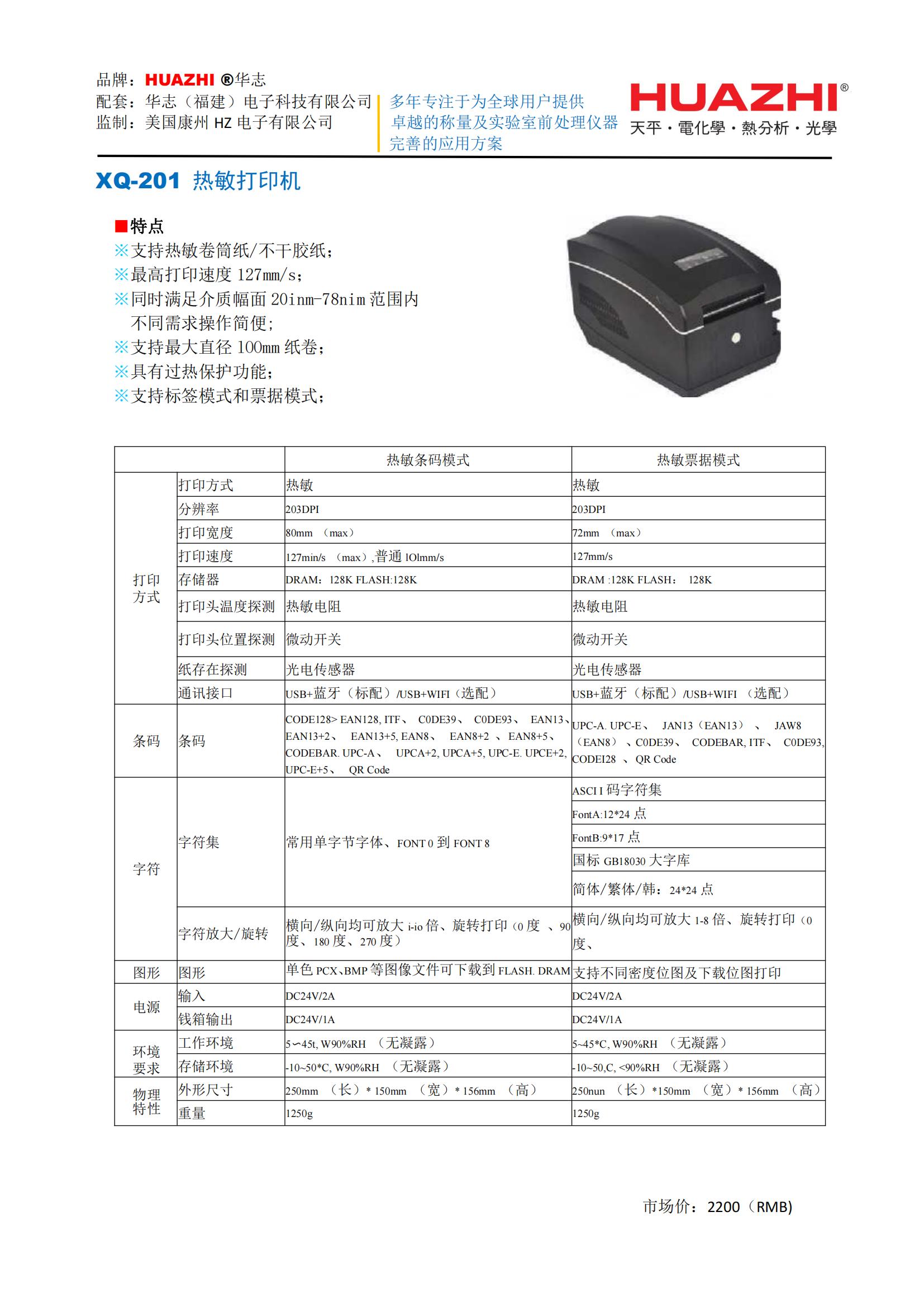 华志产品配套XQ-201 热敏打印机